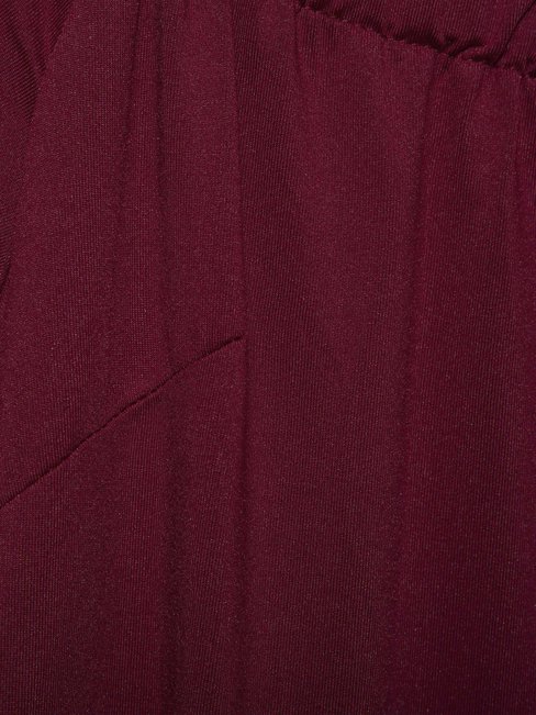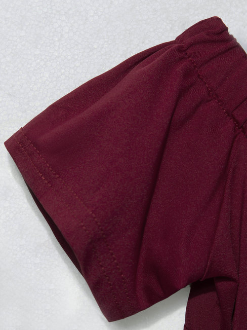 - Burgundy Pleated Off The Shoulder Plain Backless Cotton Midi Dresses (Style V200067)