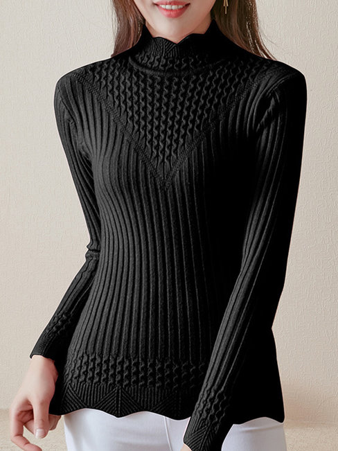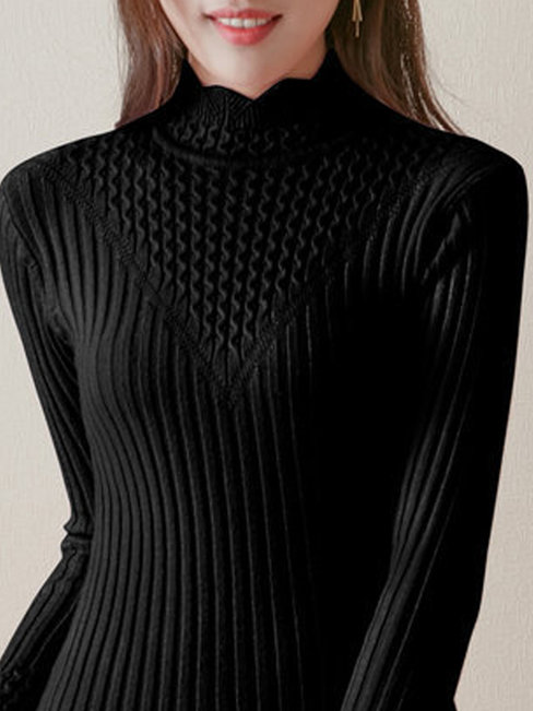 Black Polo Neck Standard Slim Plain Knitted Sweater (Style V101169)