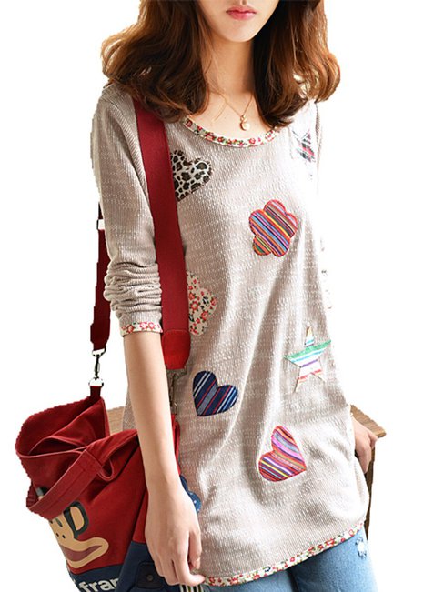 - Apricot Round Neck Long Party Polyester Applique Sweatshirts (Style V100773)