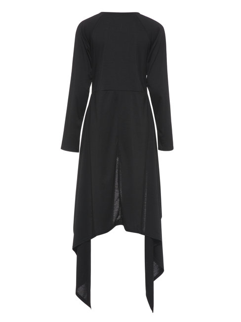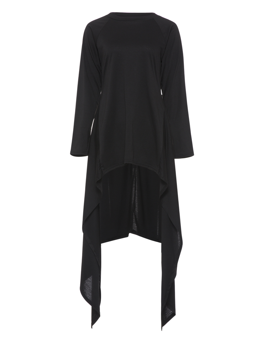 Black Round Neck Long Slim Plain Asymmetrical T Shirt (Style V200280)