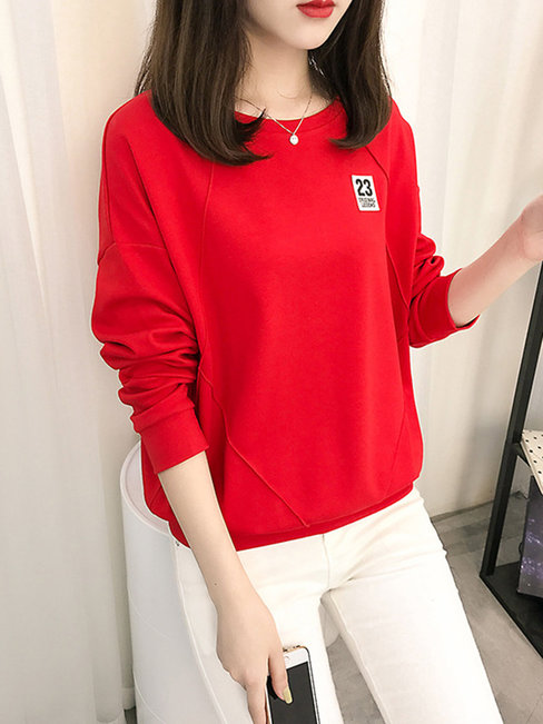 - Doe Round Neck Loose Casual Letter Patchwork Sweatshirts (Style V100818)