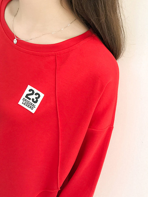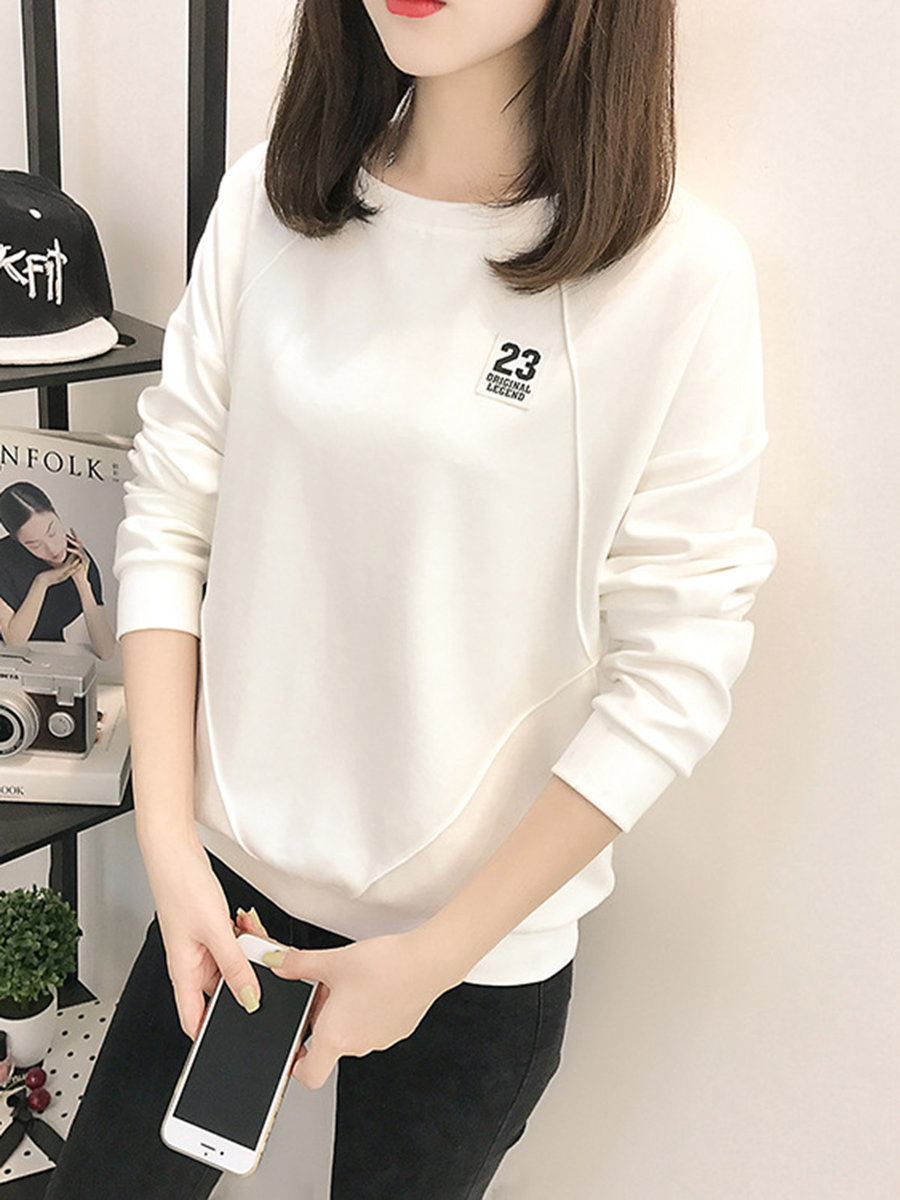 - White Round Neck Loose Casual Letter Patchwork Sweatshirts (Style V100818)