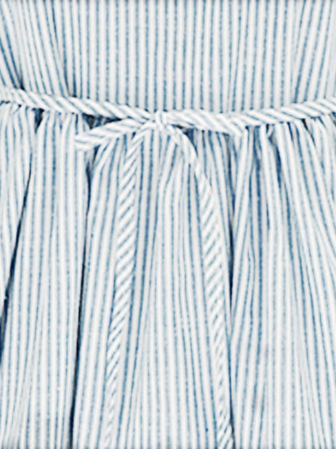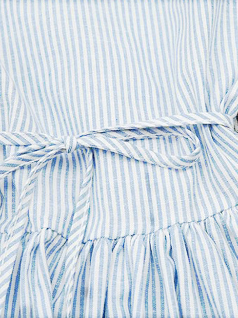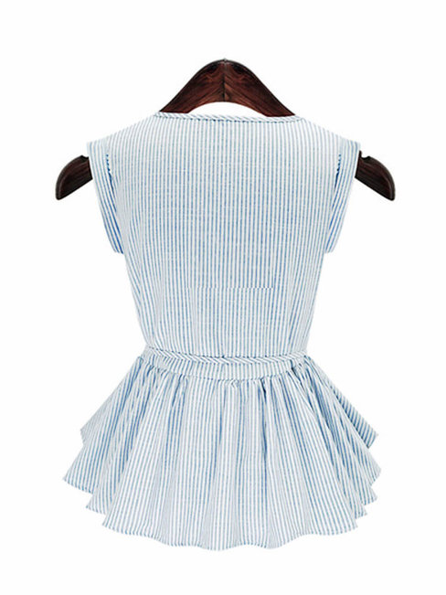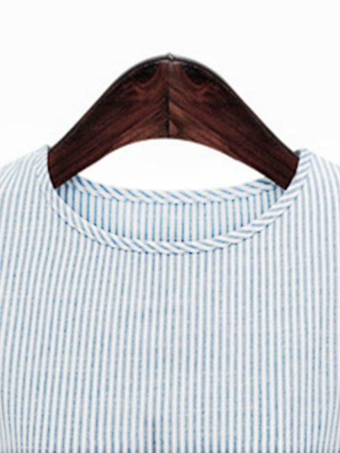 Blue Round Neck Loose Elegant Striped Cotton Blouse (Style V200831)