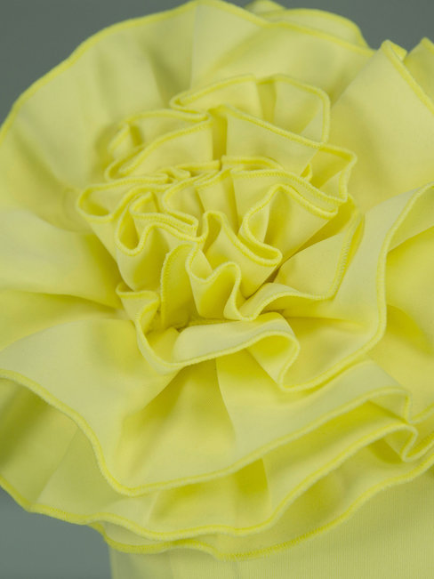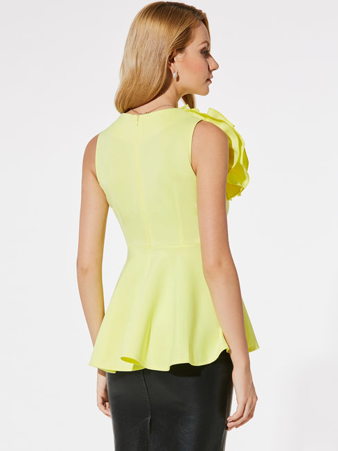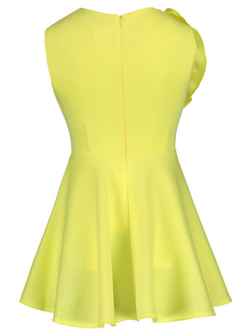 Yellow Round Neck Midi Slim Plain Patchwork Blouse (Style V200182)