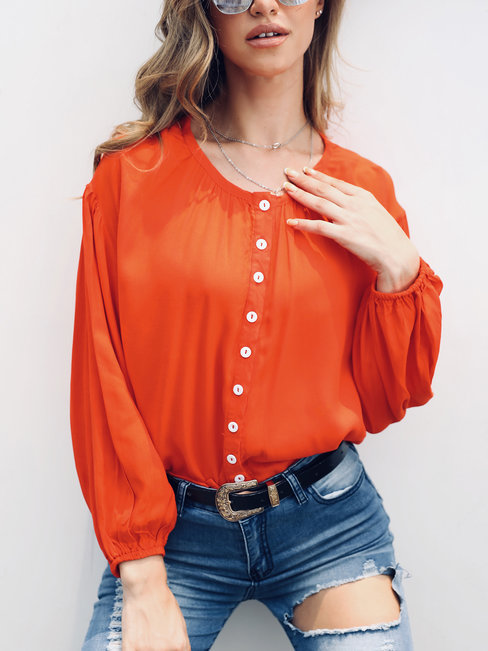 - Red Round Neck Short Date Night Polyester Button Blouse (Style V300302)