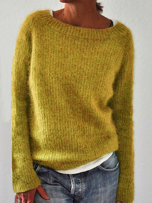 Yellow Round Neck Short Fashion Plain Cotton Sweater (Style V102510)