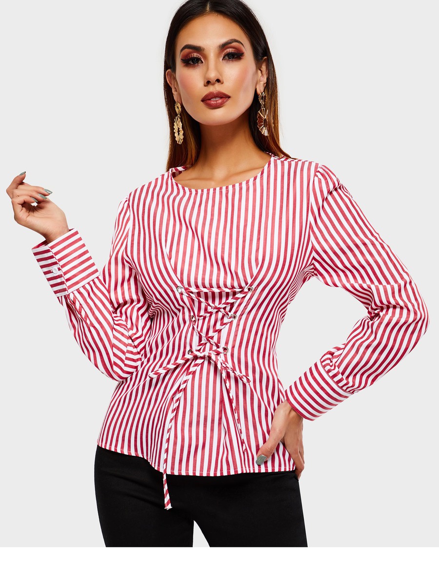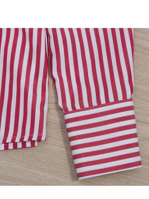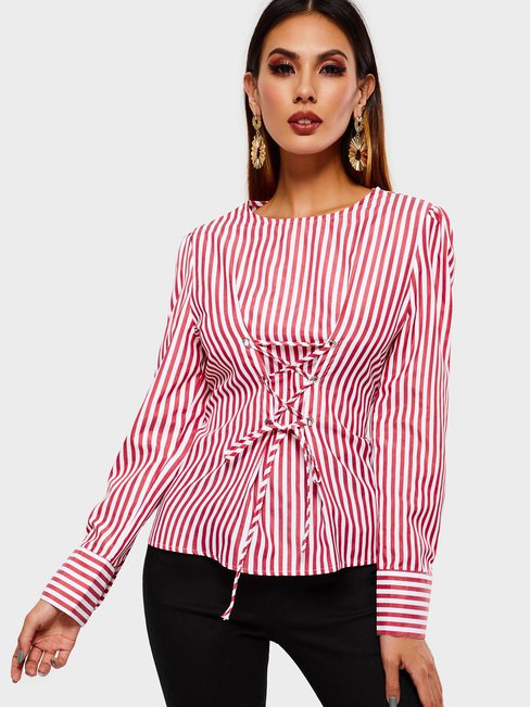 Red Round Neck Short Slim Dacron Pattern Blouse (Style V201710)