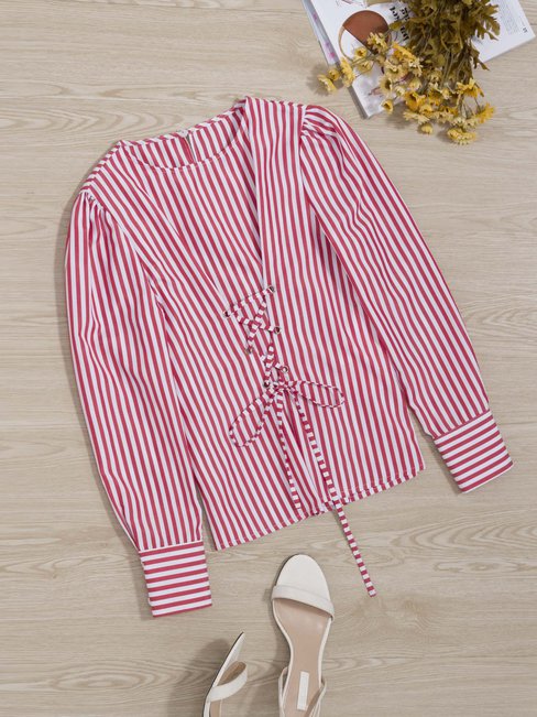 5. Standard Straight Plain Chiffon Bow Blouse (Style V201930)