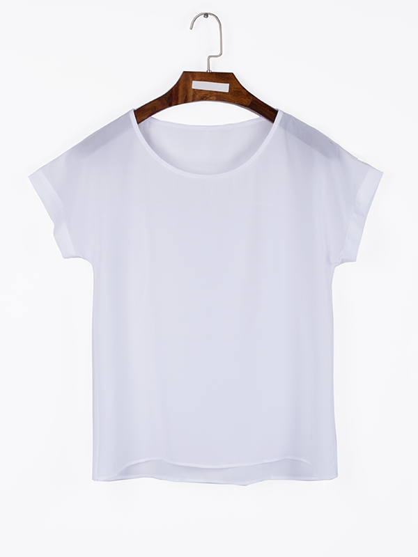 - White Round Neck Short Slim Plain Chiffon Blouse (Style V201747)