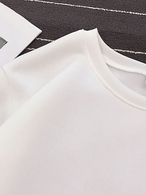 - White Round Neck Standard Cute Cotton Pattern Sweatshirts (Style V100678)
