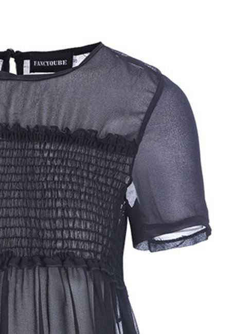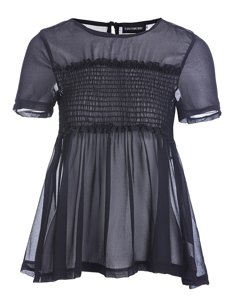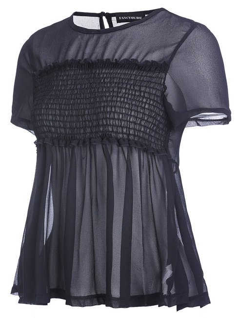 - Black Round Neck Standard Loose Date Night Polyester Blouse (Style V200843)