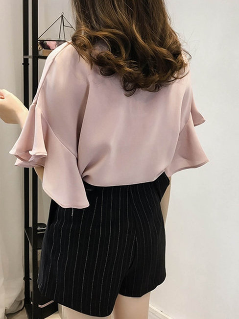 - Light Blue Round Neck Standard Loose Ladylike Plain Blouse (Style V201621)