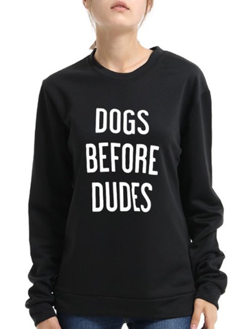 Black Round Neck Standard Loose Letter Cotton Blends Sweatshirts (Style V100626)
