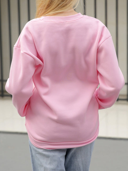 Pink Round Neck Standard Loose Sweet Letter Sweatshirts (Style V100868)