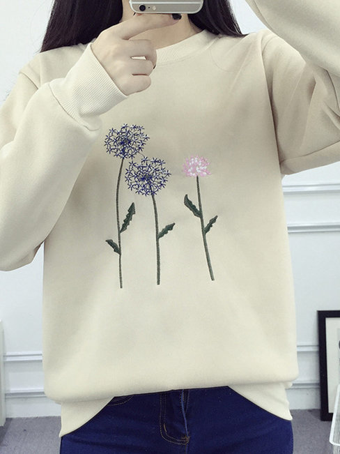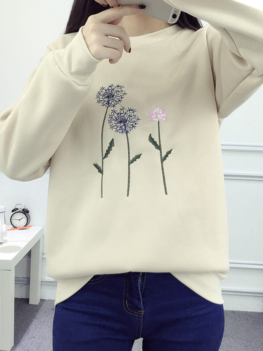 - Apricot Round Neck Standard Loose Sweet Polyester Sweatshirts (Style V100862)
