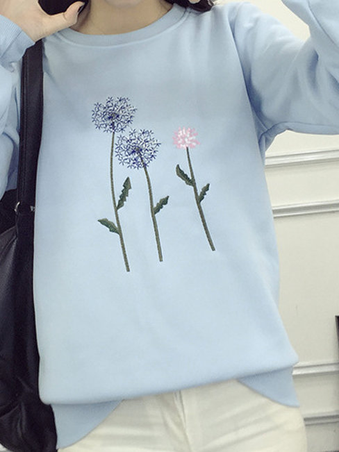 - Light Blue Round Neck Standard Loose Sweet Polyester Sweatshirts (Style V100862)