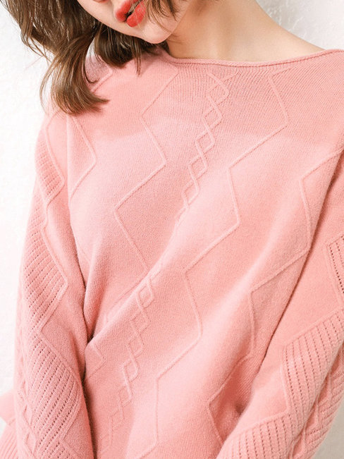 Pink Round Neck Standard Slim Date Night Plain Sweater (Style V101143)