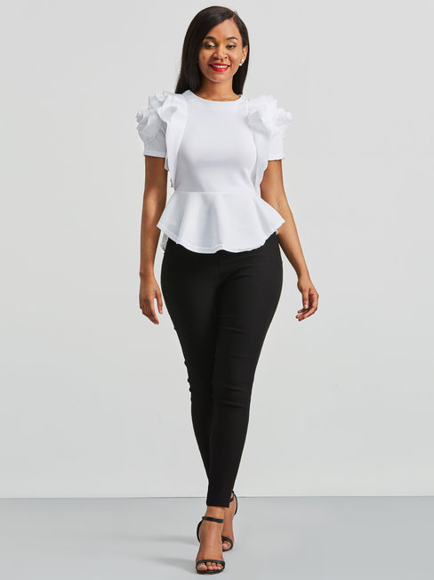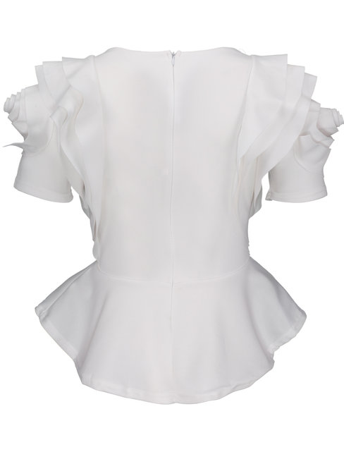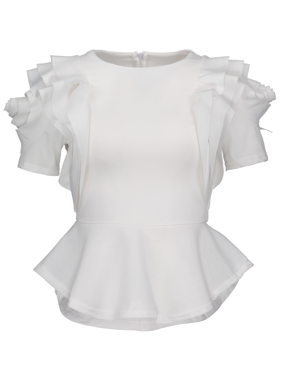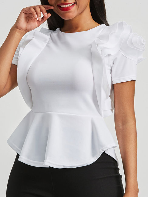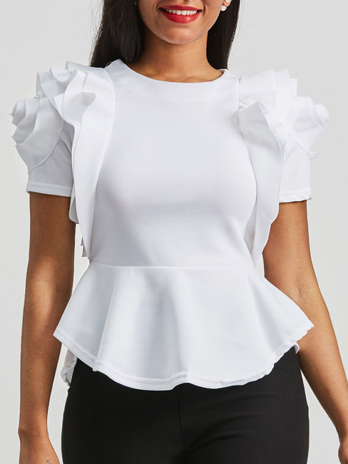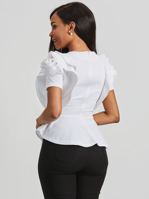 - White Round Neck Standard Slim Plain Blouse (Style V200455)