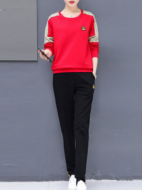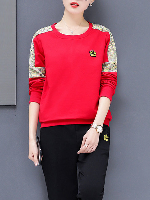 - Red Round Neck Standard Straight Color Block Polyester Sweatshirts (Style V100851)
