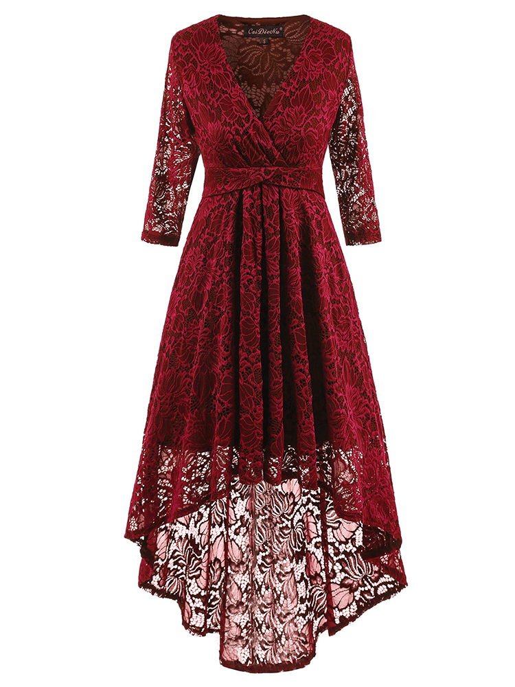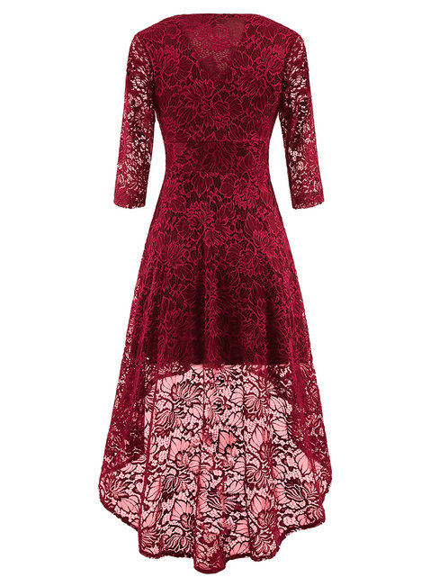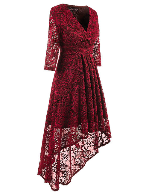 - Burgundy Sexy Asymmetrical V-neck Plain Asymmetrical Maxi Dresses (Style V200965)
