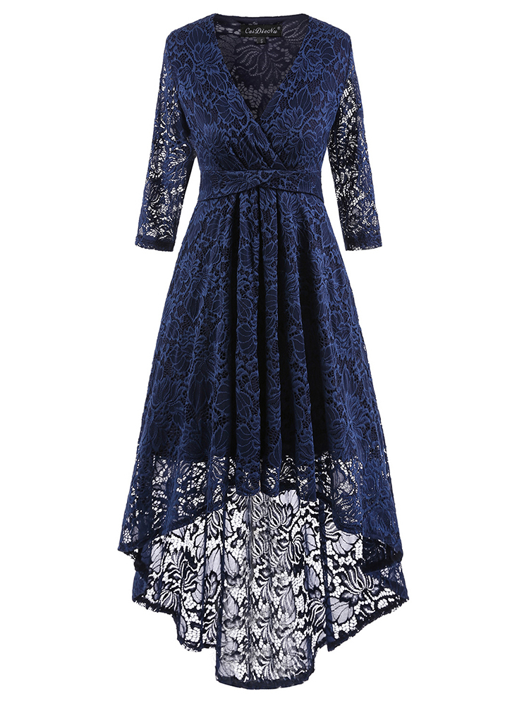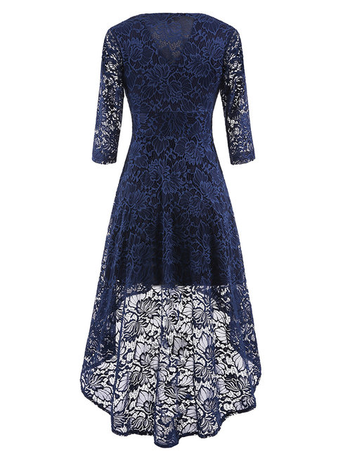 - Dark Blue Sexy Asymmetrical V-neck Plain Asymmetrical Maxi Dresses (Style V200965)