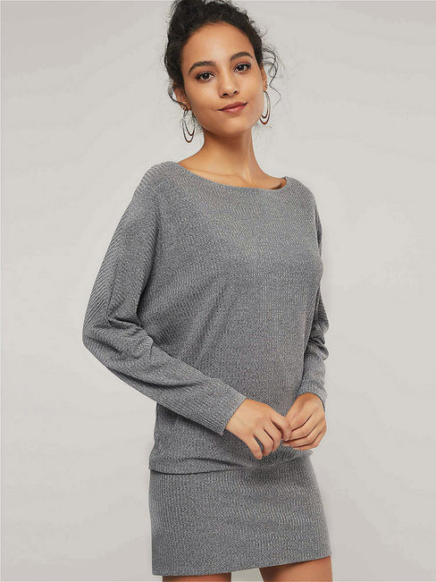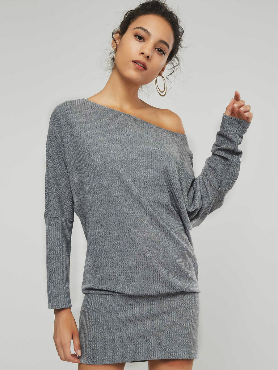 - Gray Sexy Bodycon Off The Shoulder Plain Thread Bodycon Dresses (Style V200970)