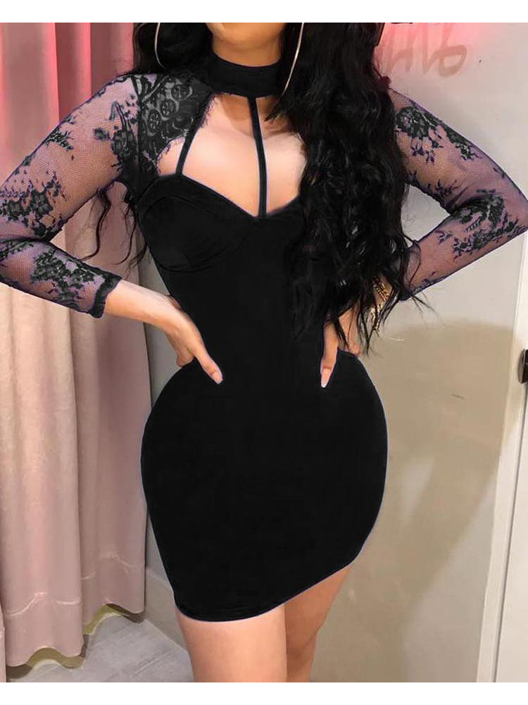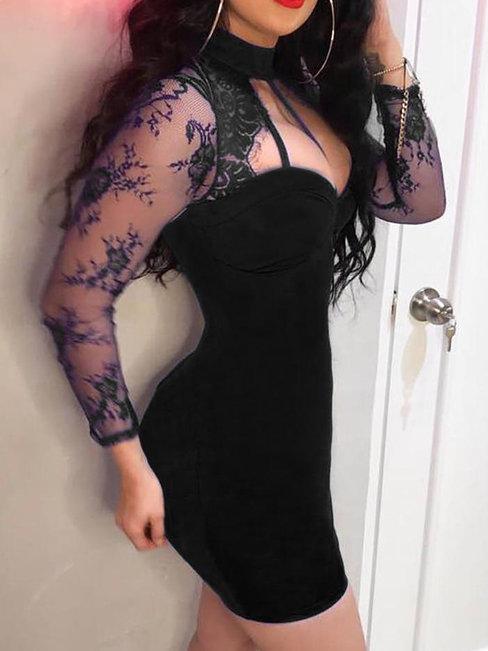 4. Elegant Bodycon Stand Collar Patchwork Lace Bodycon Dresses (Style V201158)