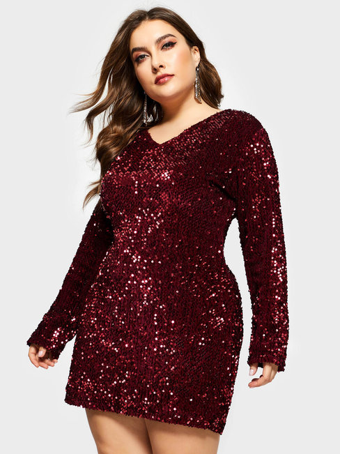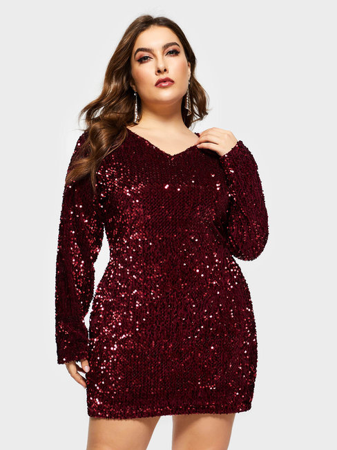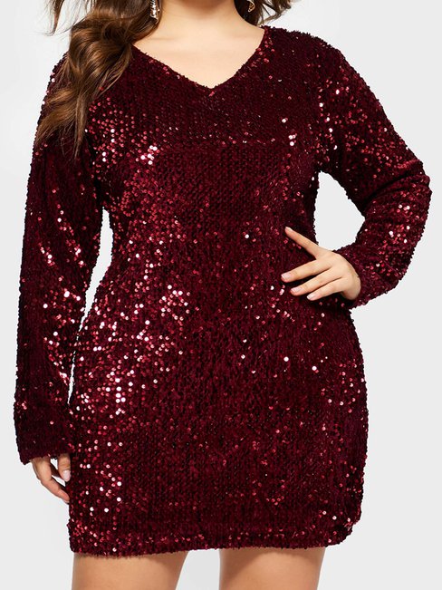 - Red Sexy Bodycon V-neck Sequin Bodycon Dresses (Style V201255)