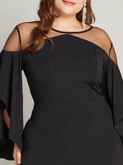 - Black Sexy Pencil Round Neck Plain Cotton Blends Knee Length Dresses (Style V200839)