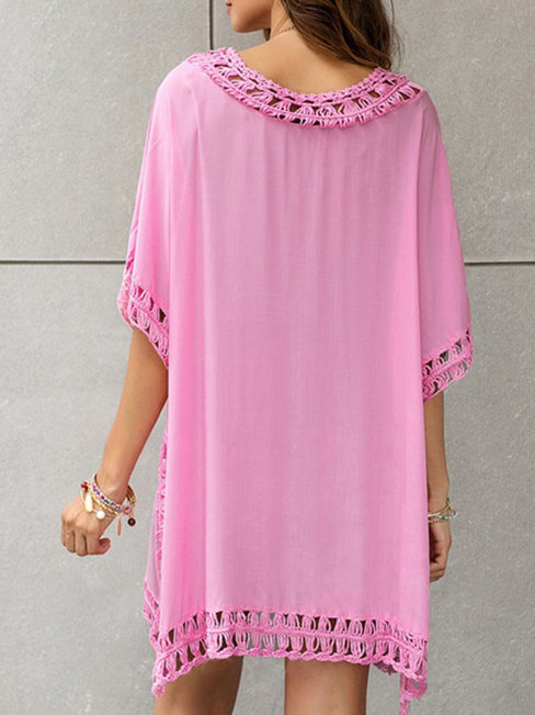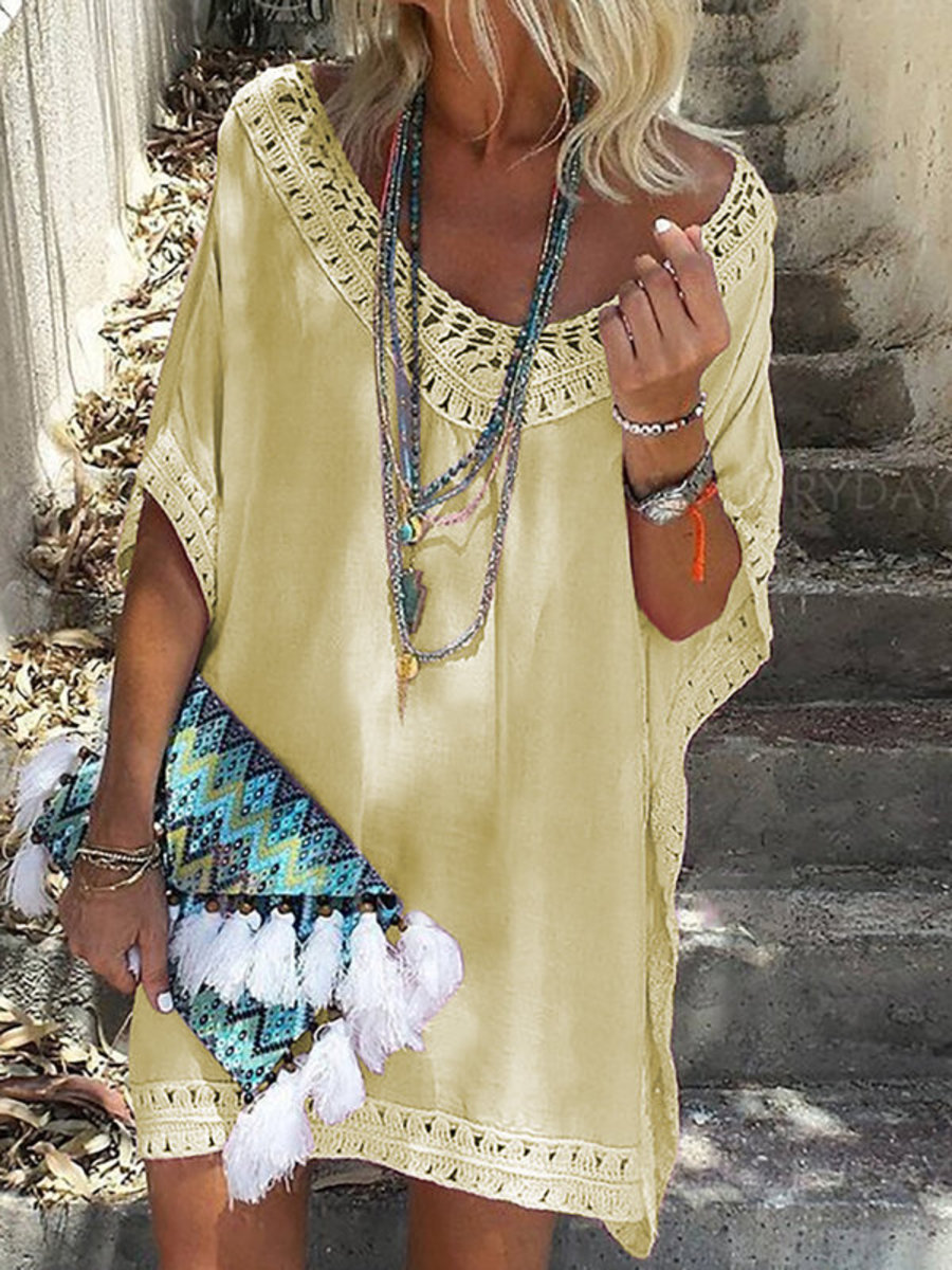 Light Yellow Sexy Shift Solid Color Hollow Out Polyester Casual Dresses (Style V100208)