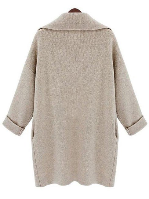 Beige Shawl Collar Long Loose Date Night Button Coat (Style V101391)