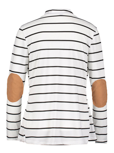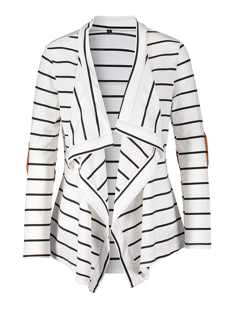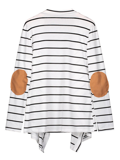 The striped pattern of this cardigan is classic and its shawl collar is very chic! The pads are popular and I find its really practical, feels thicker and softer as putting the elbows on the table.