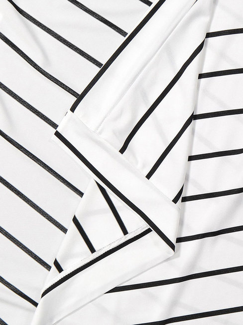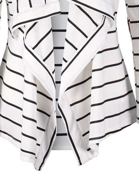 White Shawl Collar Loose Travel Look Striped Cotton Sweater (Style V200838)