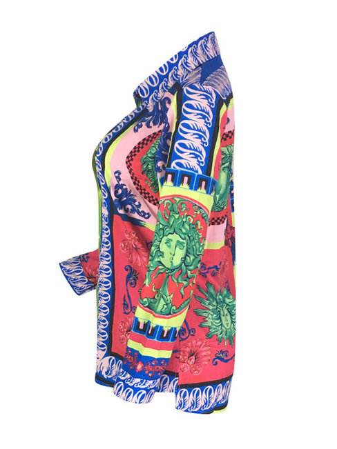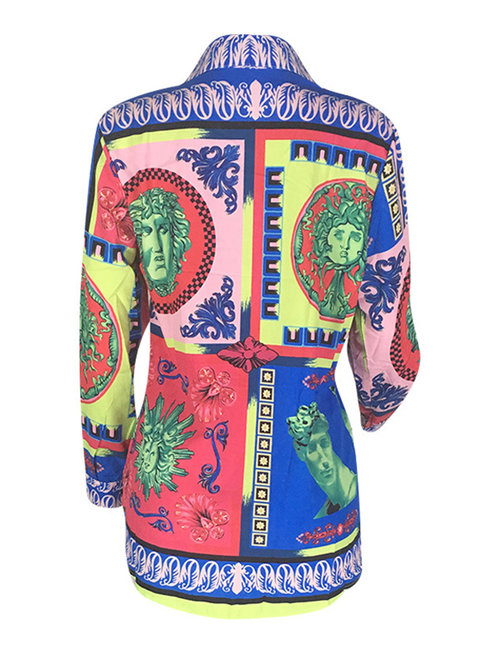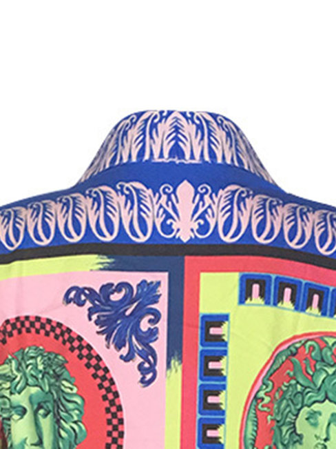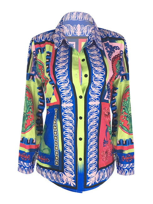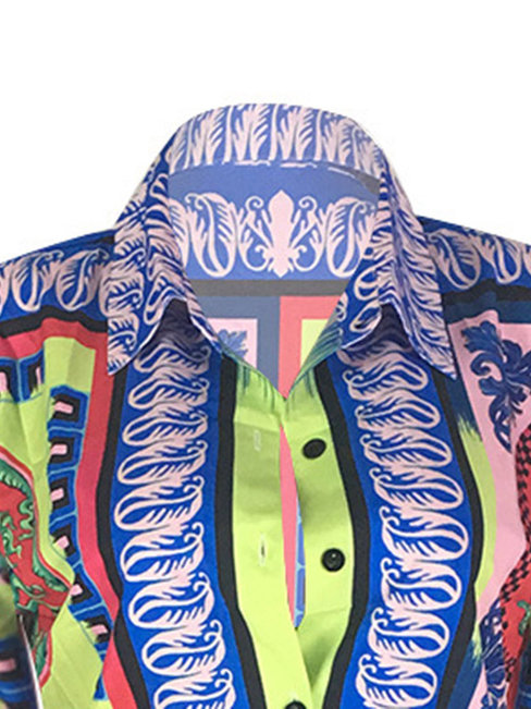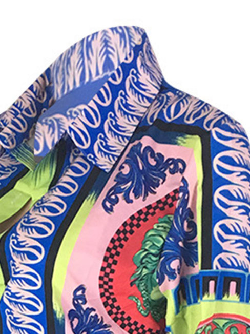 - Royal Blue Shawl Collar Midi Casual Polyester Pattern Blouse (Style V201336)