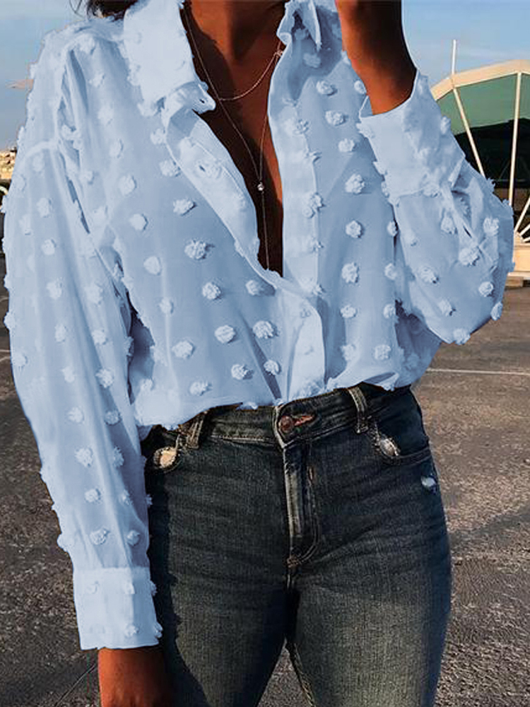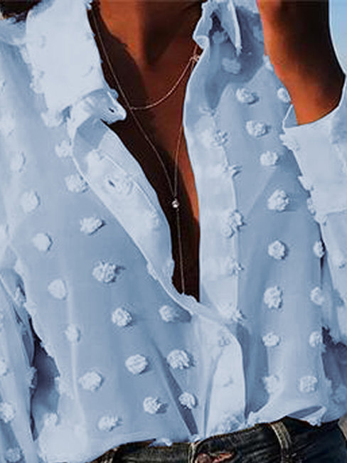 - Light Blue Shawl Collar Standard Loose Date Night Plain Blouse (Style V300615)