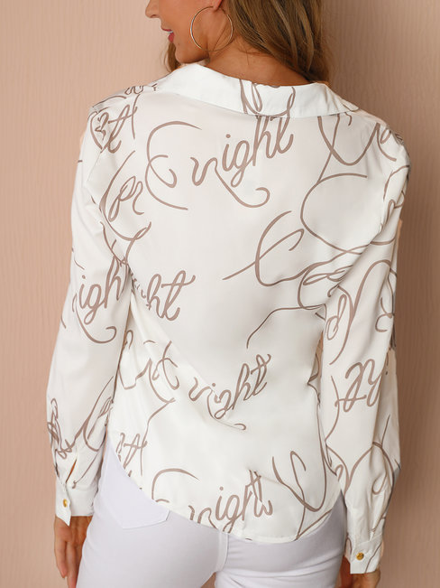 White Shawl Collar Standard Straight Letter Pattern Blouse (Style V300381)