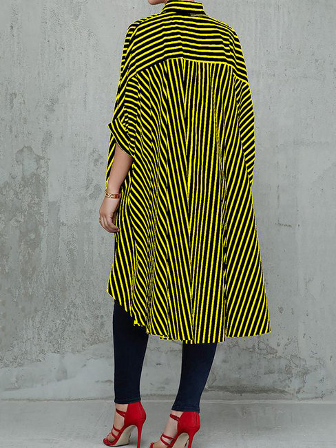 - Yellow Shirt Collar Loose Date Night Striped Asymmetrical Blouse (Style V300014)