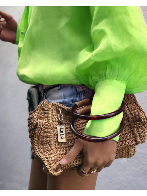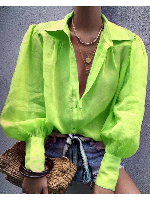 - Green Shirt Collar Loose Elegant Plain Polyester Blouse (Style V300313)