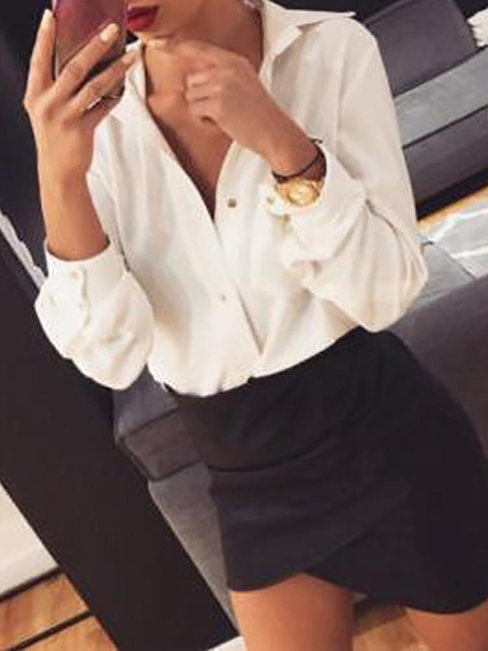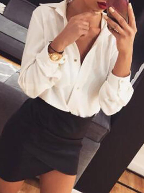 - White Shirt Collar Standard Slim Date Night Button Blouse (Style V300779)