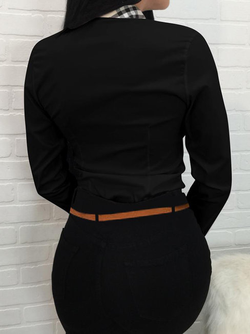 - Black Shirt Collar Standard Slim Fashion Polyester Blouse (Style V300851)
