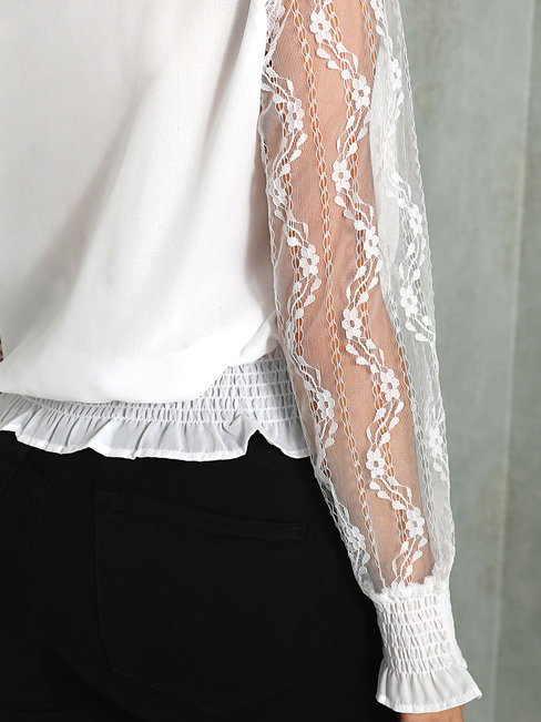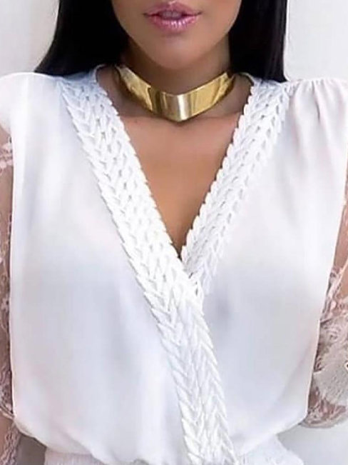- White Short Loose Date Night Plain Polyester T Shirt (Style V300541)