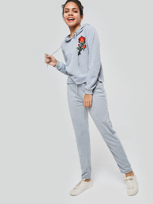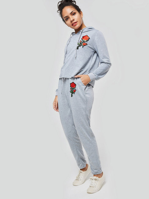 - Gray Short Loose Fashion Plain Embroidered Hoodie (Style V201713)
