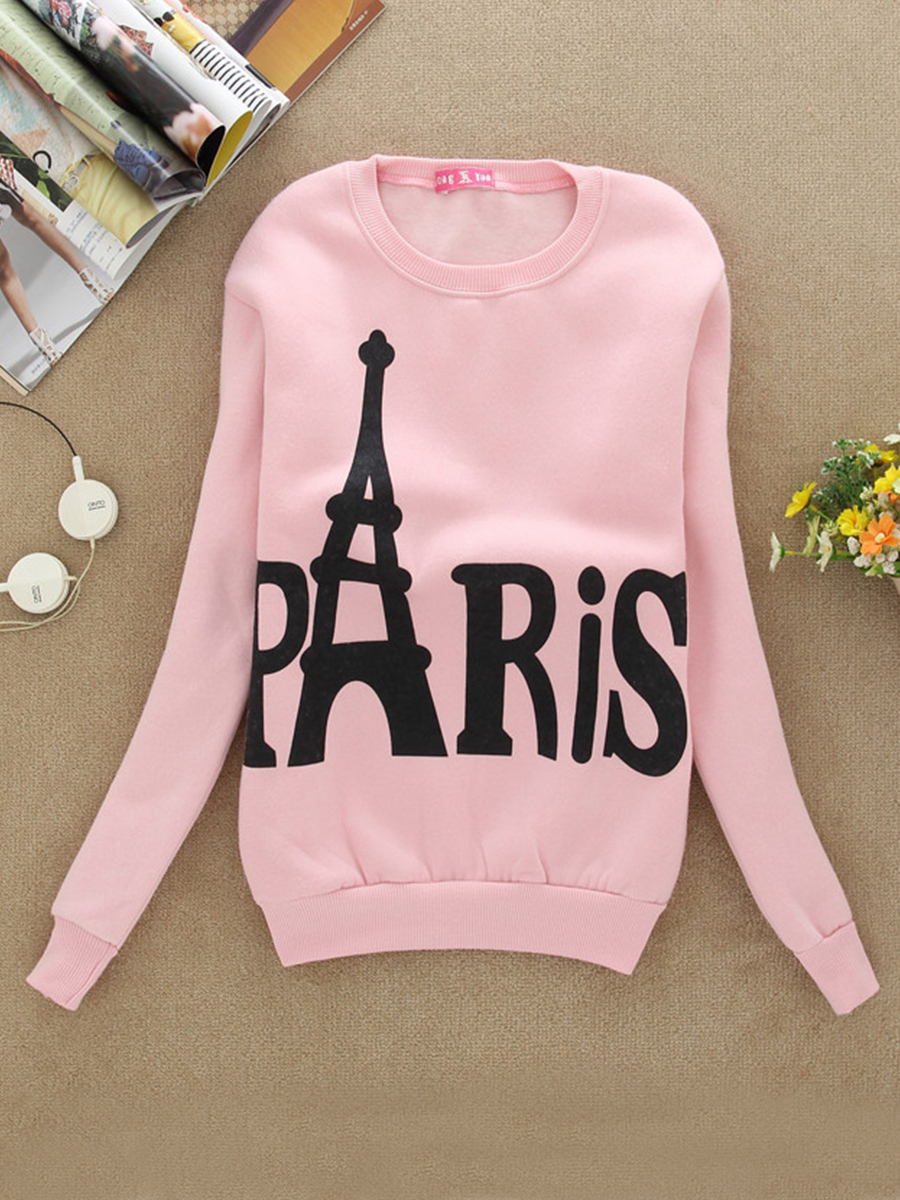 - Pink Slim Casual Letter Dacron Pattern Sweatshirts (Style V100844)