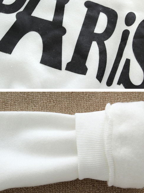 White Slim Casual Letter Dacron Pattern Sweatshirts (Style V100844)