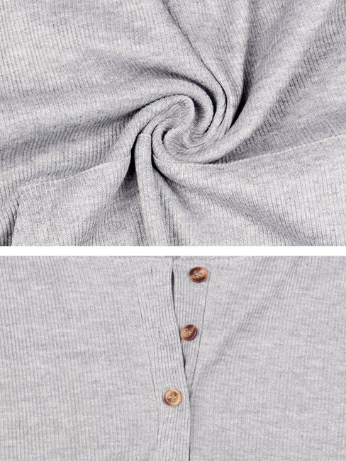 Grey Slim Casual Plain Polyester Button Sweater (Style V100947)