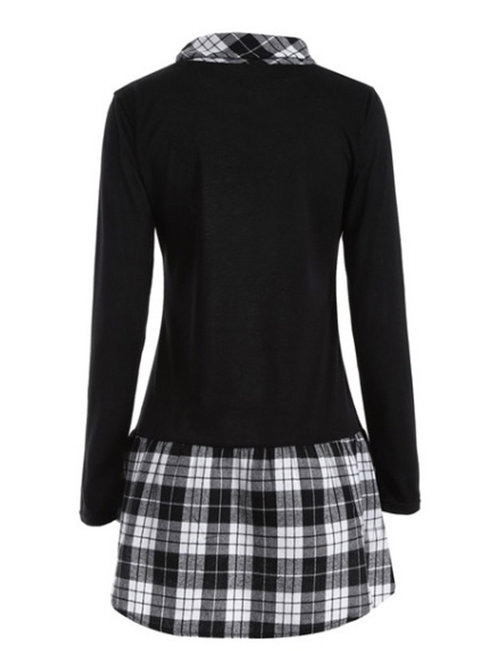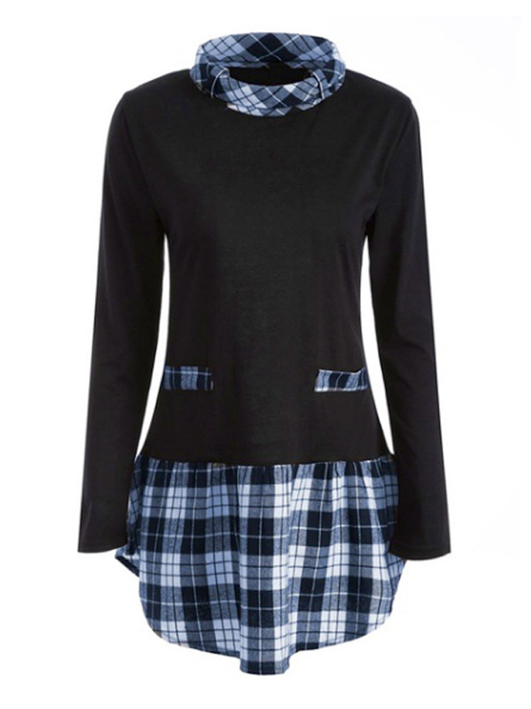 - Blue Slim Travel Look Plaid Polyester Patchwork Blouse (Style V200824)