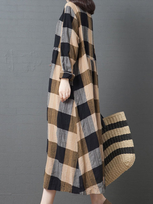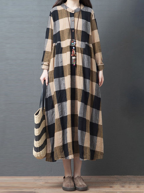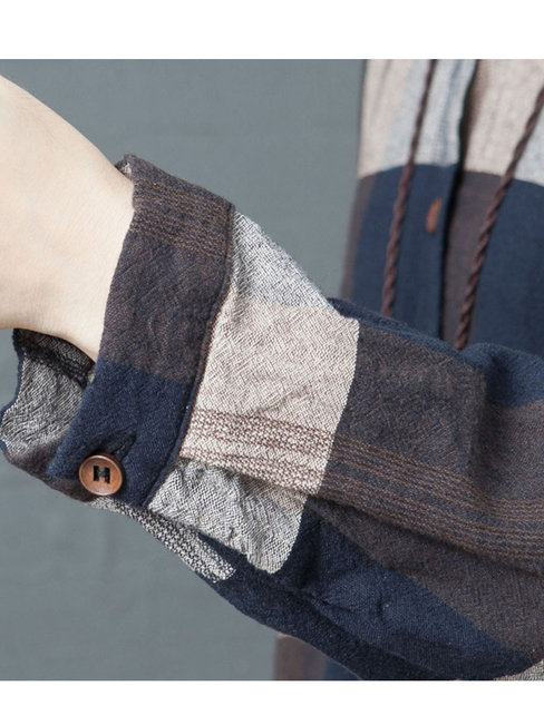 - Coffee Slow Life Flowy Round Neck Striped Patchwork Casual Dresses (Style V201848)