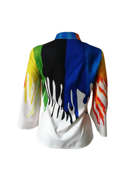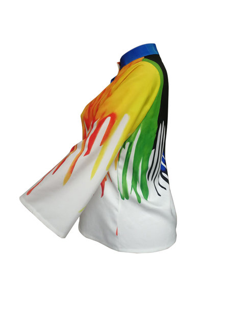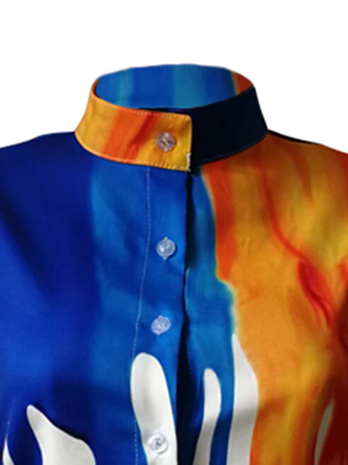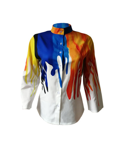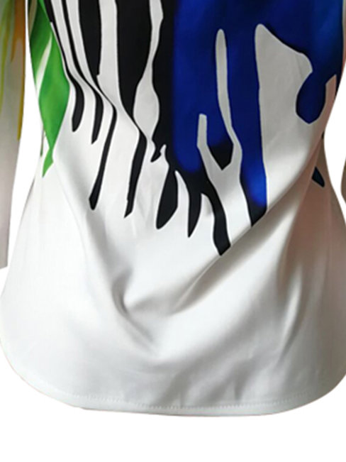 - White Stand Collar Loose Casual Polyester Pattern Blouse (Style V201335)