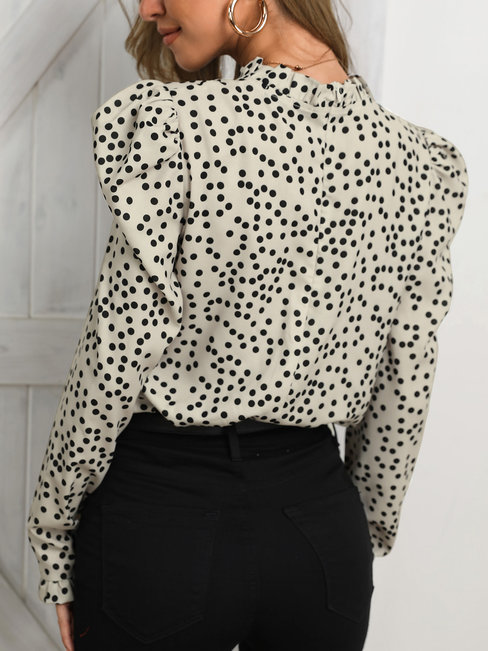 - Apricot Stand Collar Slim Date Night Polka Dot Polyester T Shirt (Style V300512)