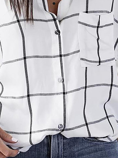 - White Stand Collar Standard Loose Elegant Pattern Blouse (Style V300975)